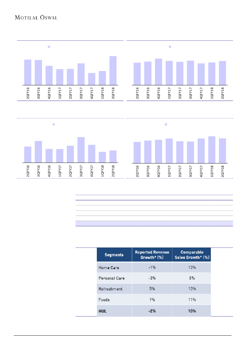 HUVR’s 2QFY18 net sales rose 5.9% YoY to INR83.1b.