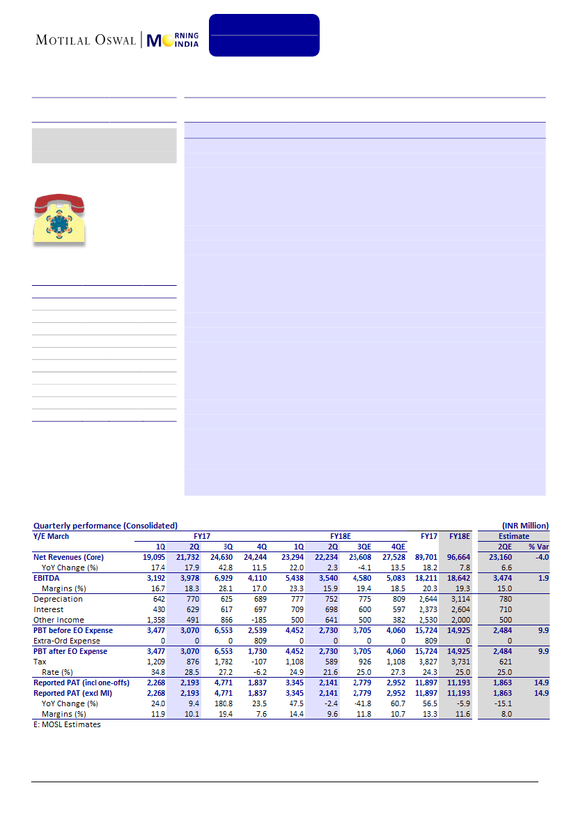 Consol EBITDA grew 20% YoY to INR89.4b (est INR72.5b), translating into adj PAT