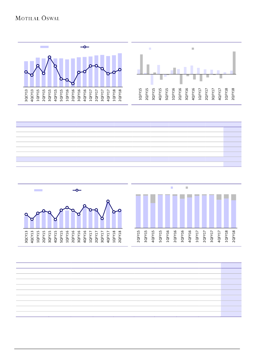 income further impacted PAT decline by 16.5% YoY to INR3.5b (est INR4.4b).