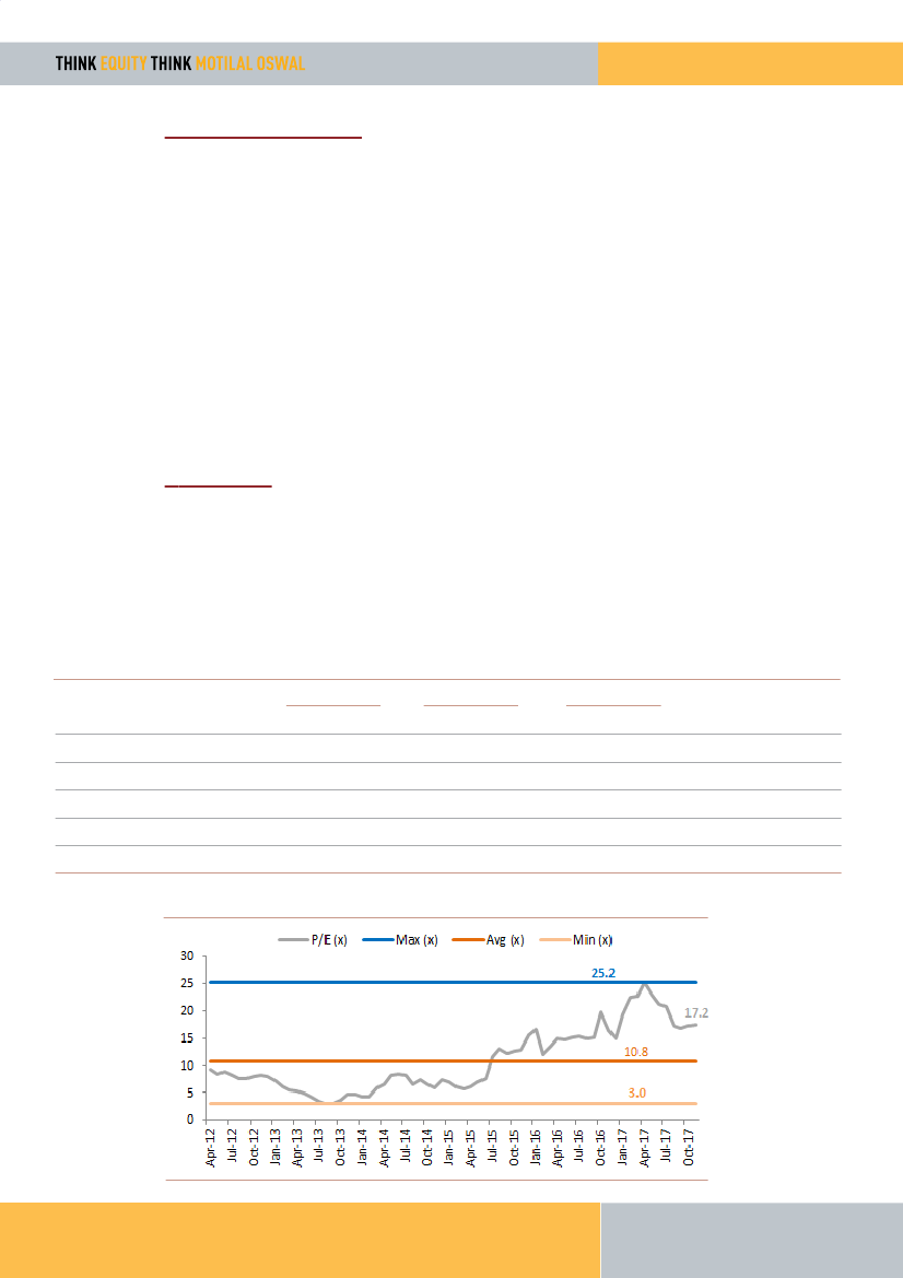 and stable RoE the stock is trading at 17x our FY19E EPS. We believe