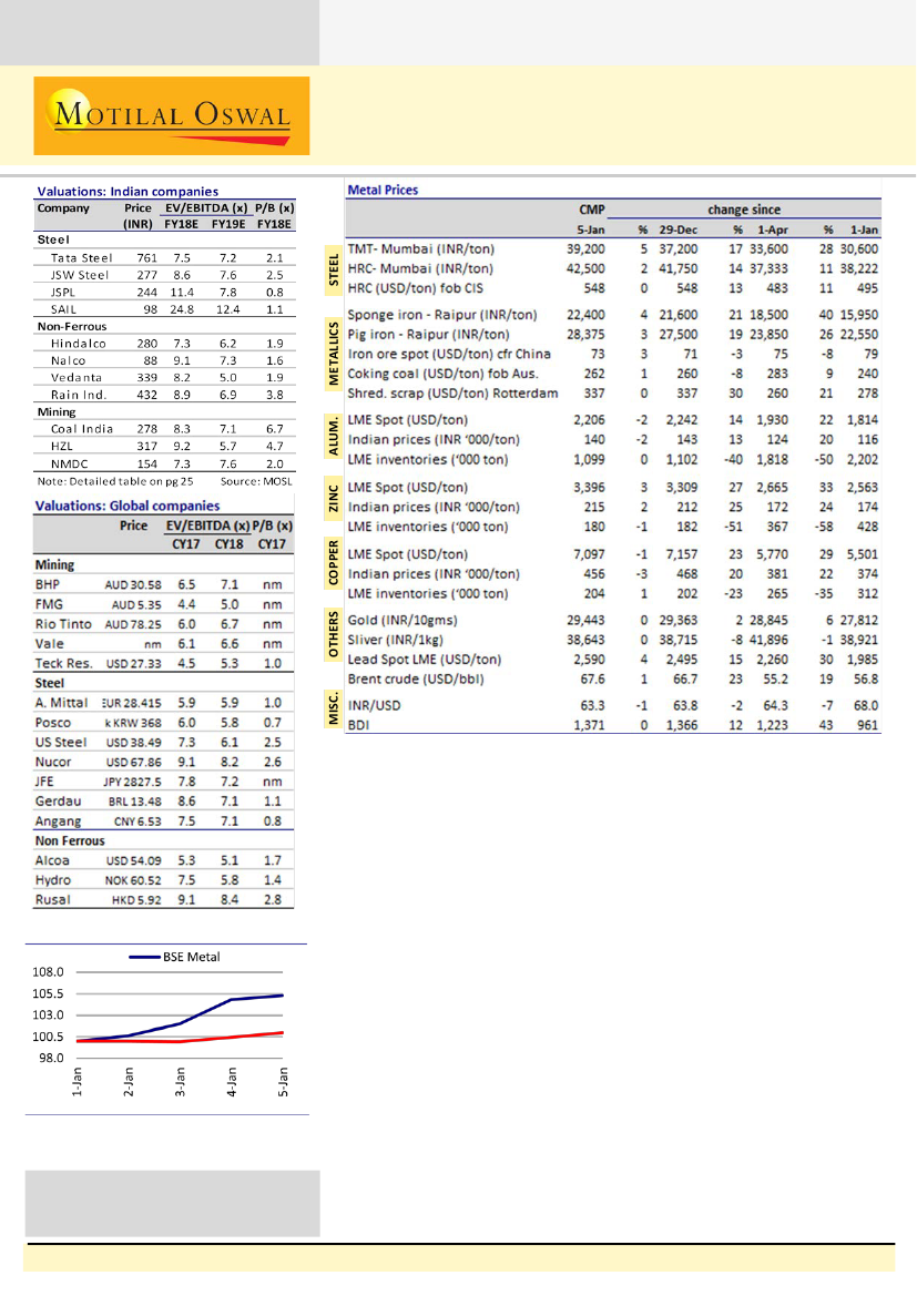 fines prices were up INR300-500/t. Domestic HRC prices were up ~2%