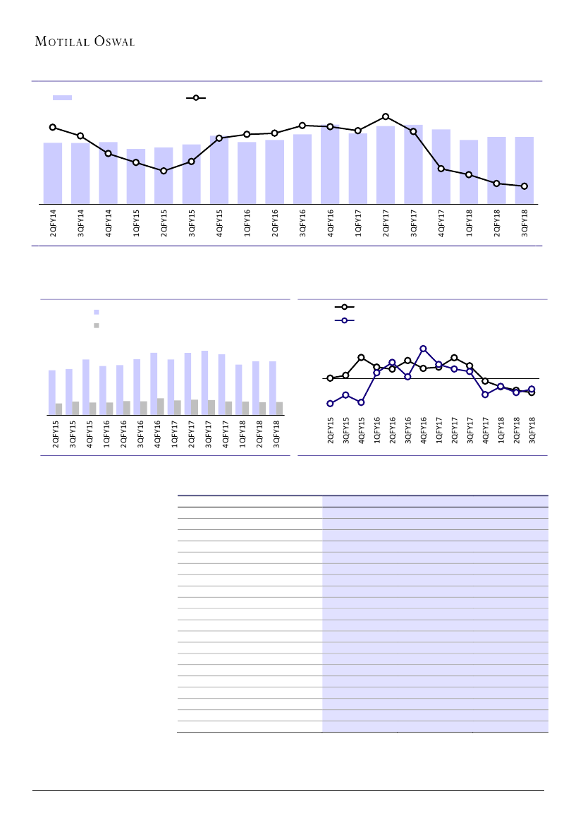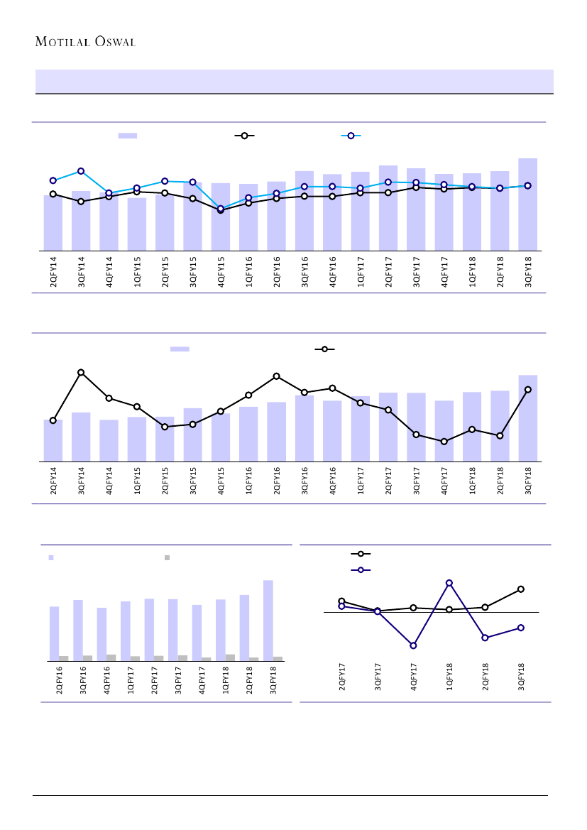 revenue rebounded (+23% YoY) to INR18.4b on a low base (3QFY17 was