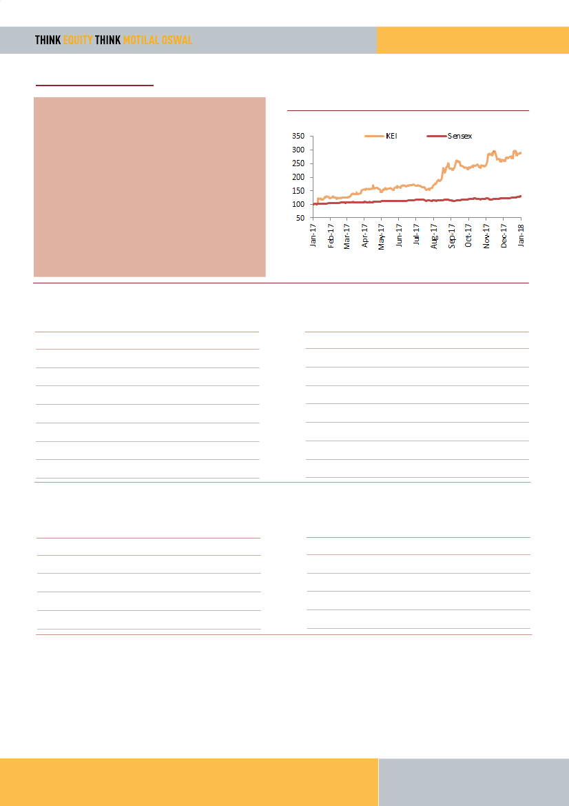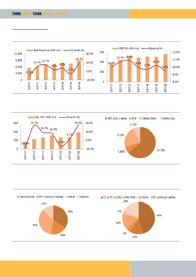 3QFY18, KEI's PAT grew 43.6%/36.9% on YoY/QoQ basis to INR 0.4bn, driven