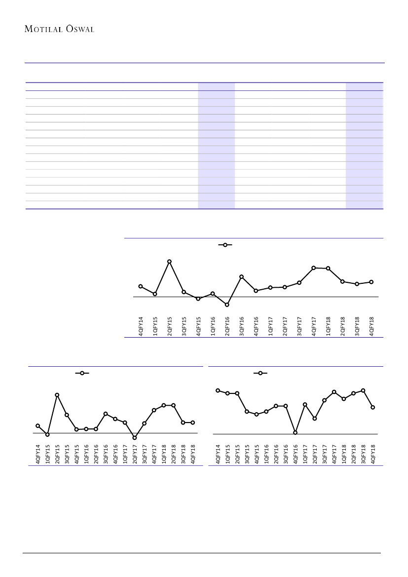350bp YoY to 10.6% (est. of 9.0%) in 4QFY18.