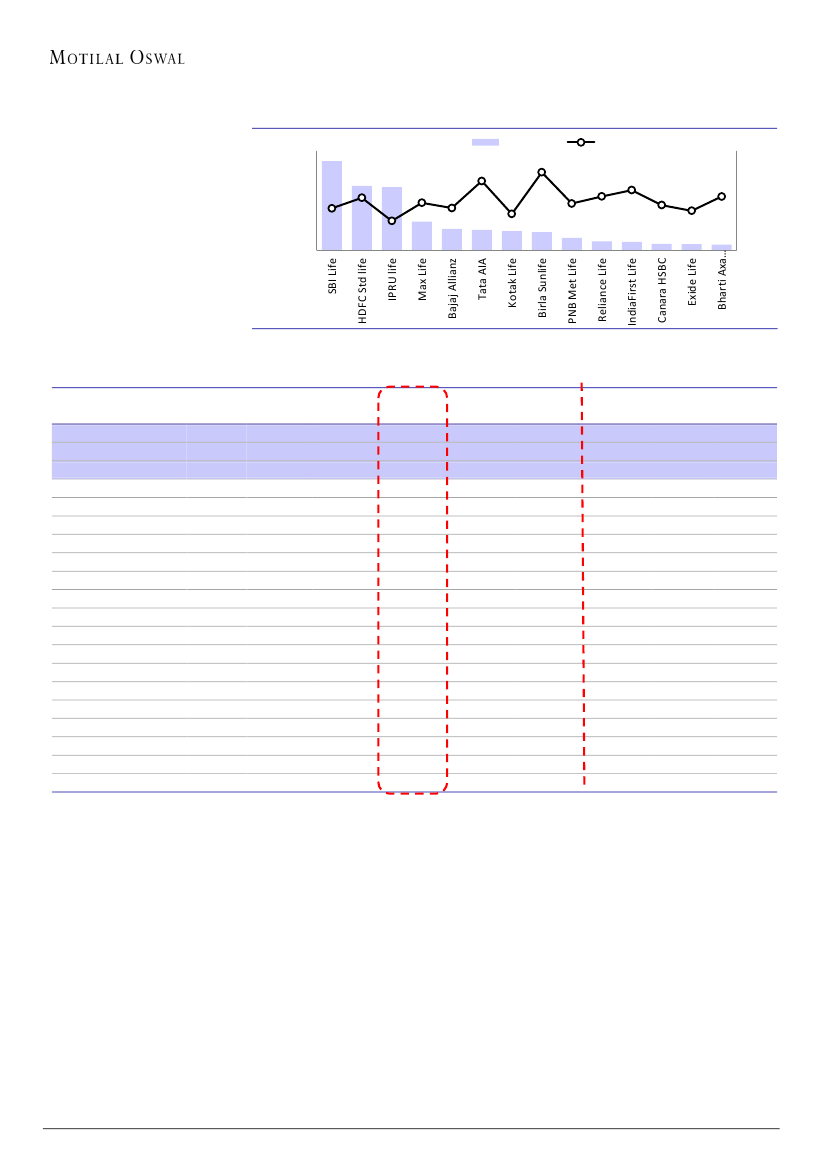 Life, Max Life and Kotak Life – stands stable at ~66%. However, a few other players