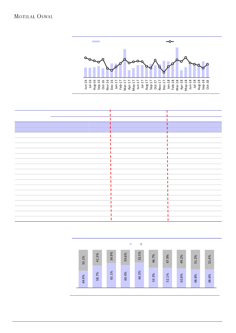 Private players’ new business WRP growth was steady at ~17% YoY in Oct-18 (also flat on a