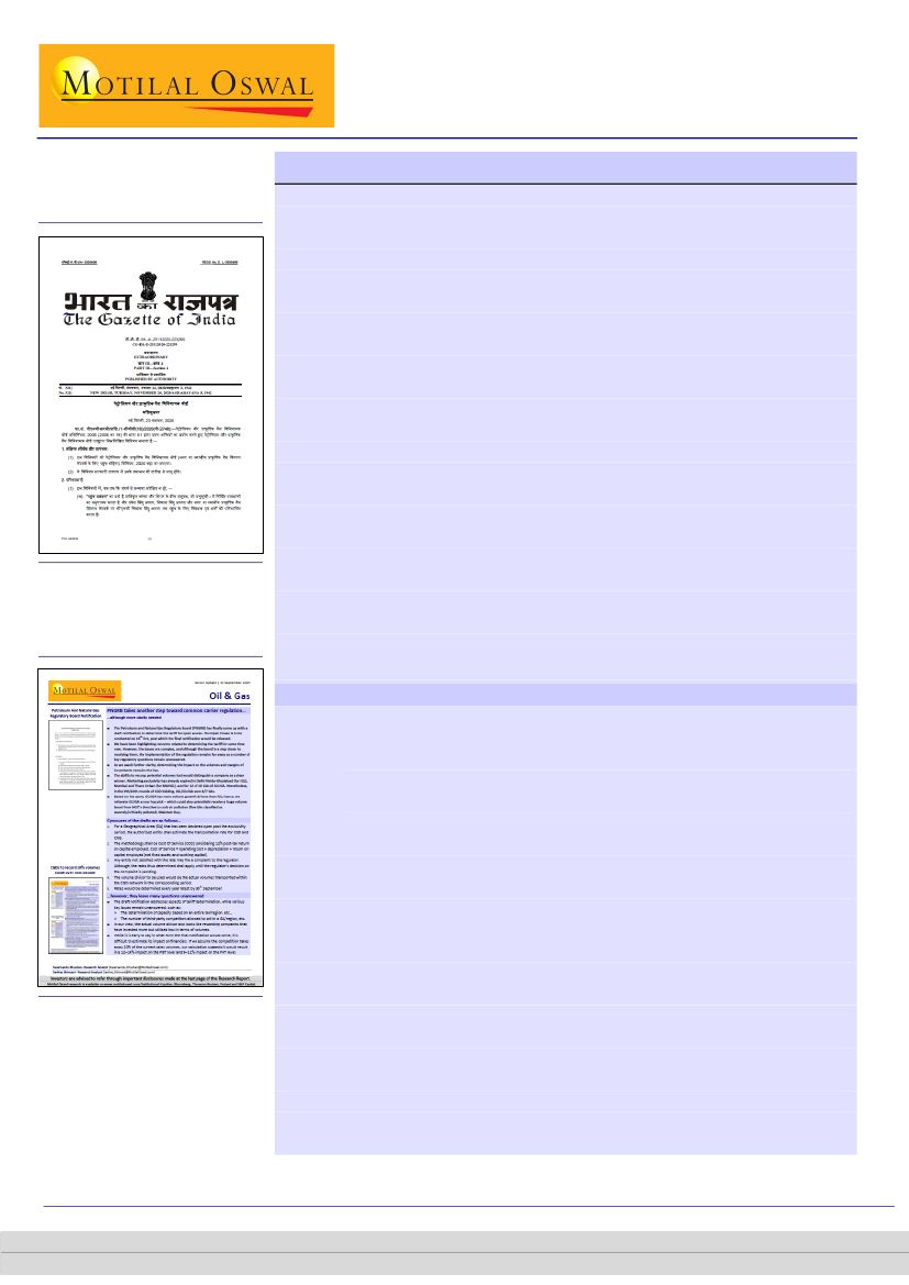 board (PNGRB) has finally published its regulations. Key excerpts are listed in the