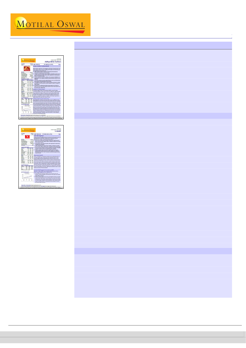 year’s sales. Subsequently, we expect ABFRL/Trent/V-Mart to post 3%/12%/8% YoY