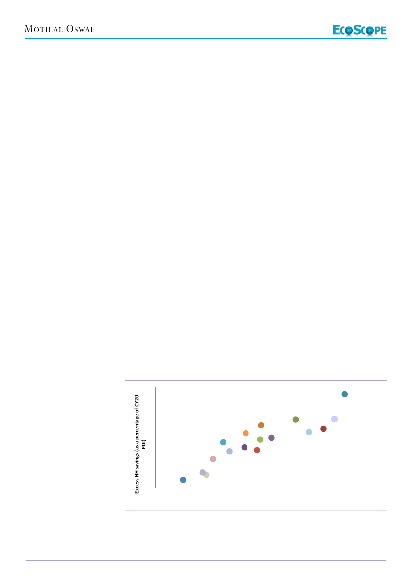 Based on our assumptions, India’s cumulative excess HH savings (since 1QCY20 to 2QCY21) ranged from -1.0% to +1.6%