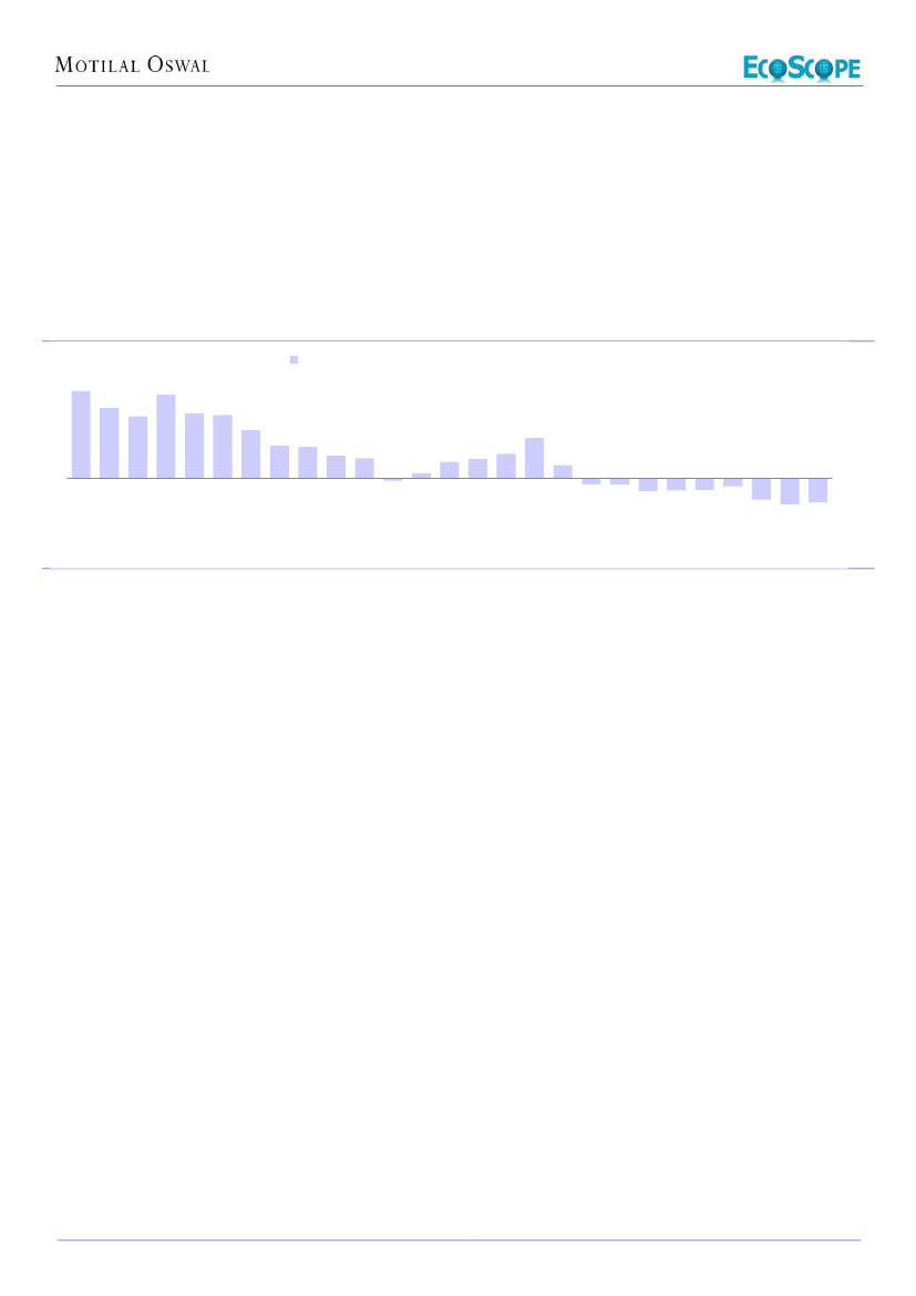 slowest in two decades, barring FY21. In real terms also, PFCE growth (at 3-4%) was the slowest in two decades. Is this