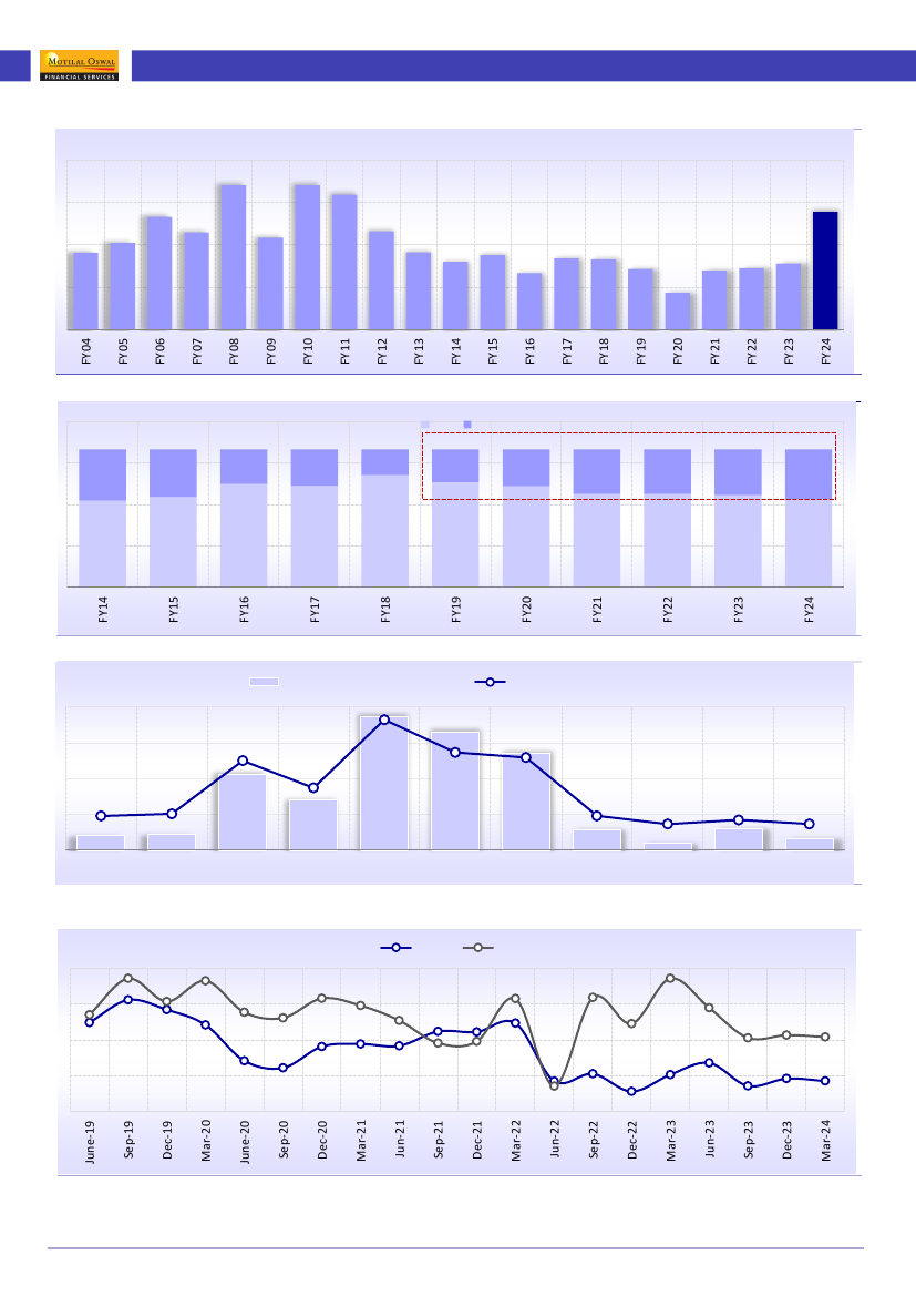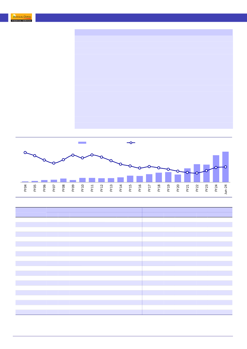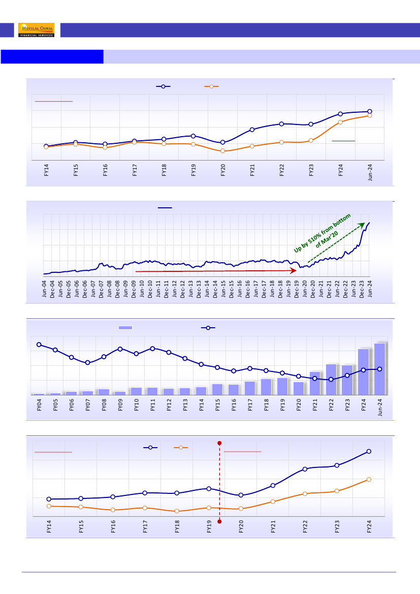 market cap catapulted to INR323t (INR363t as of Jun’24) from INR55t.
