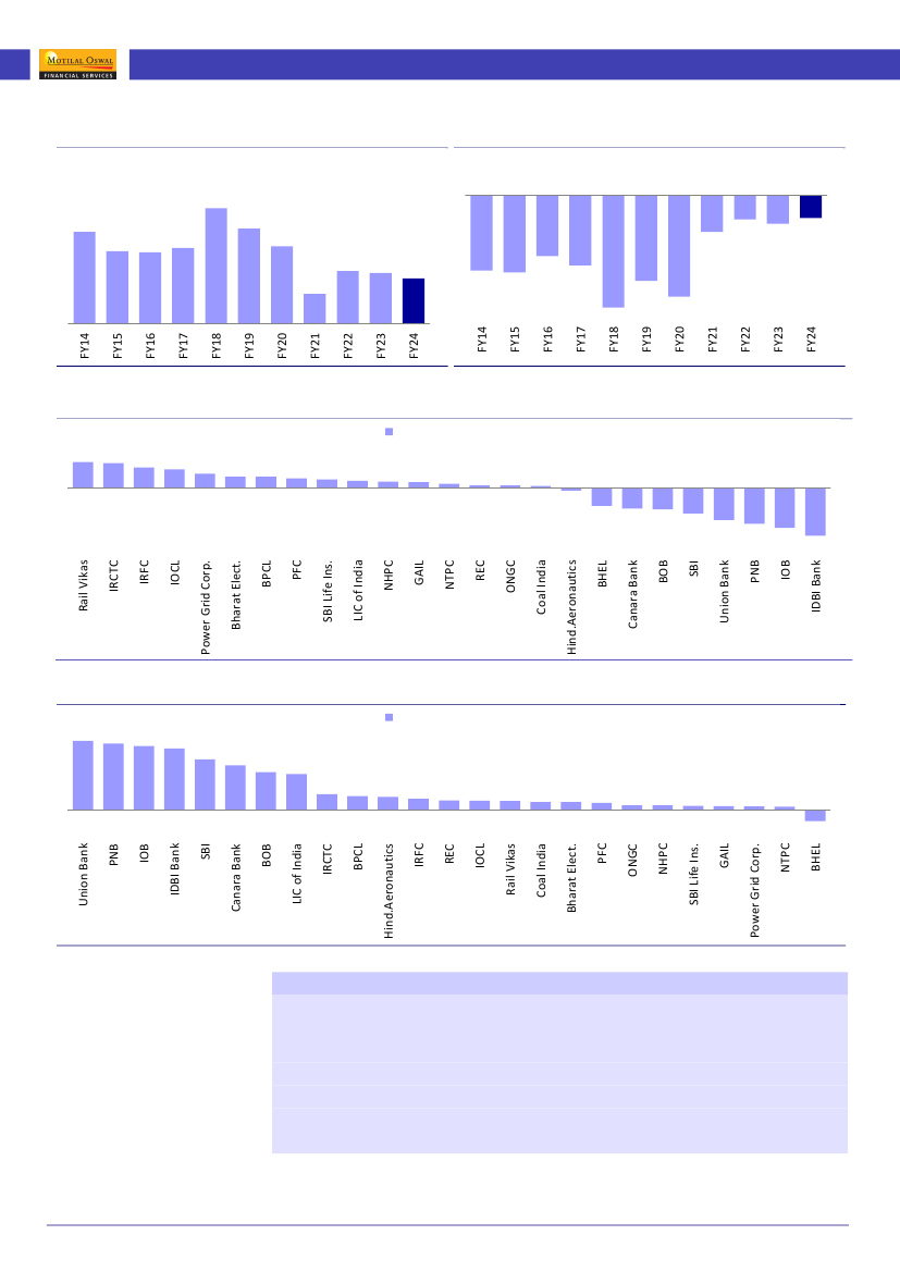 During FY19-24, PSU earnings reported a 33.8% CAGR, outperforming that of the