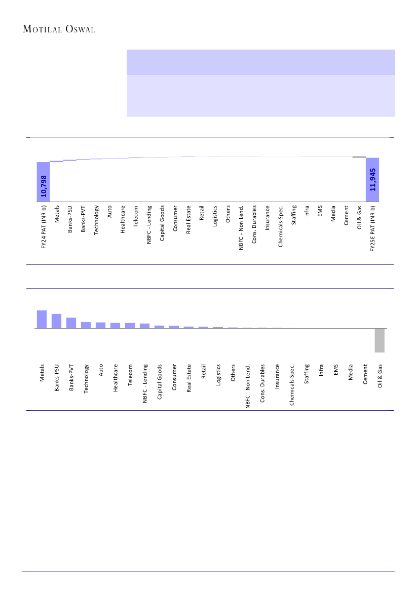 PAT growth of 9%/9%/11% YoY in FY25. The Financials and Metals sectors are