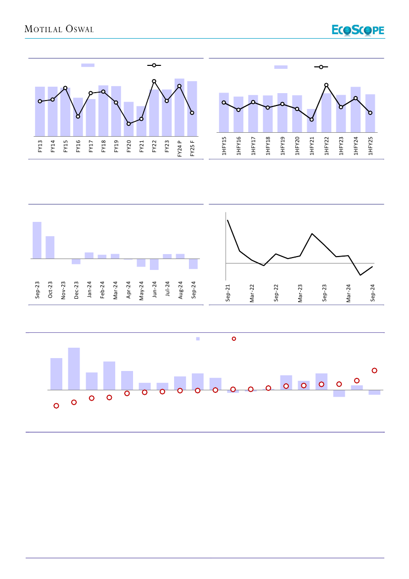 especially for states. Assuming ~40% YoY growth in the Center’s capex and ~20% YoY growth in states’ capex in 2HFY25,