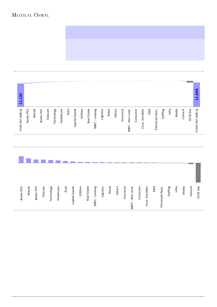 PAT growth of 6%/5%/4% YoY in FY25. The Financials and Metals sectors are