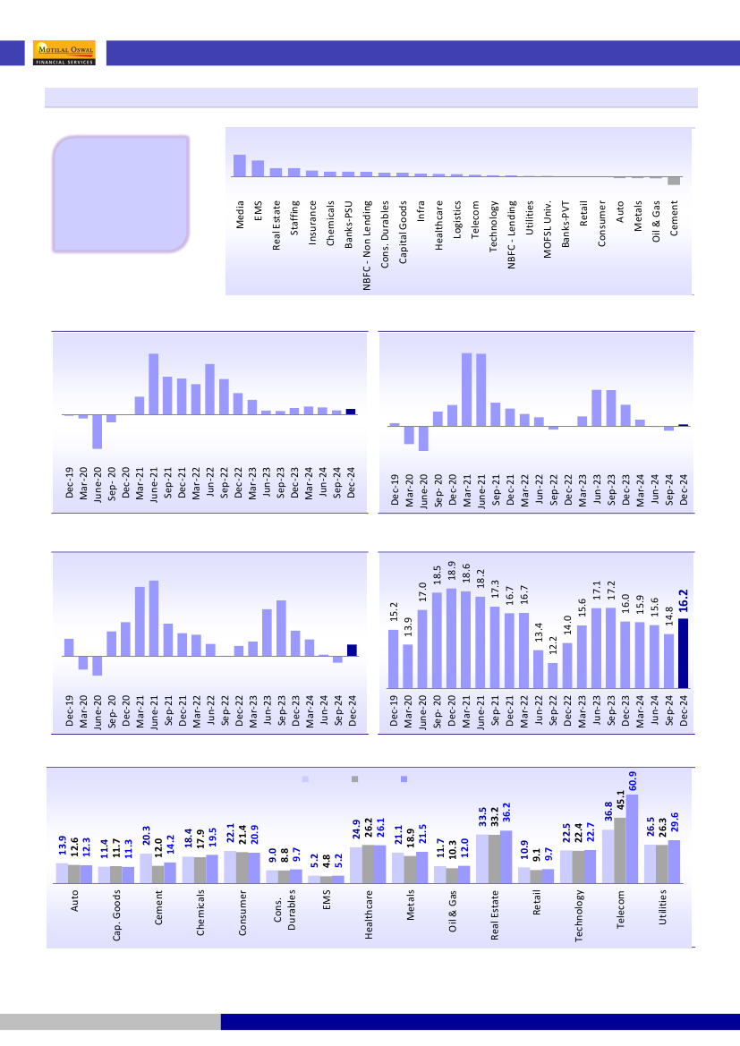 BFSI, profits for the MOFSL Universe have declined 1% YoY (vs. est. of +2% YoY).