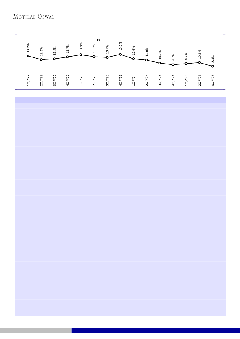 managed only 4% PAT growth in 9MFY25 (following a healthy 20%+ CAGR during