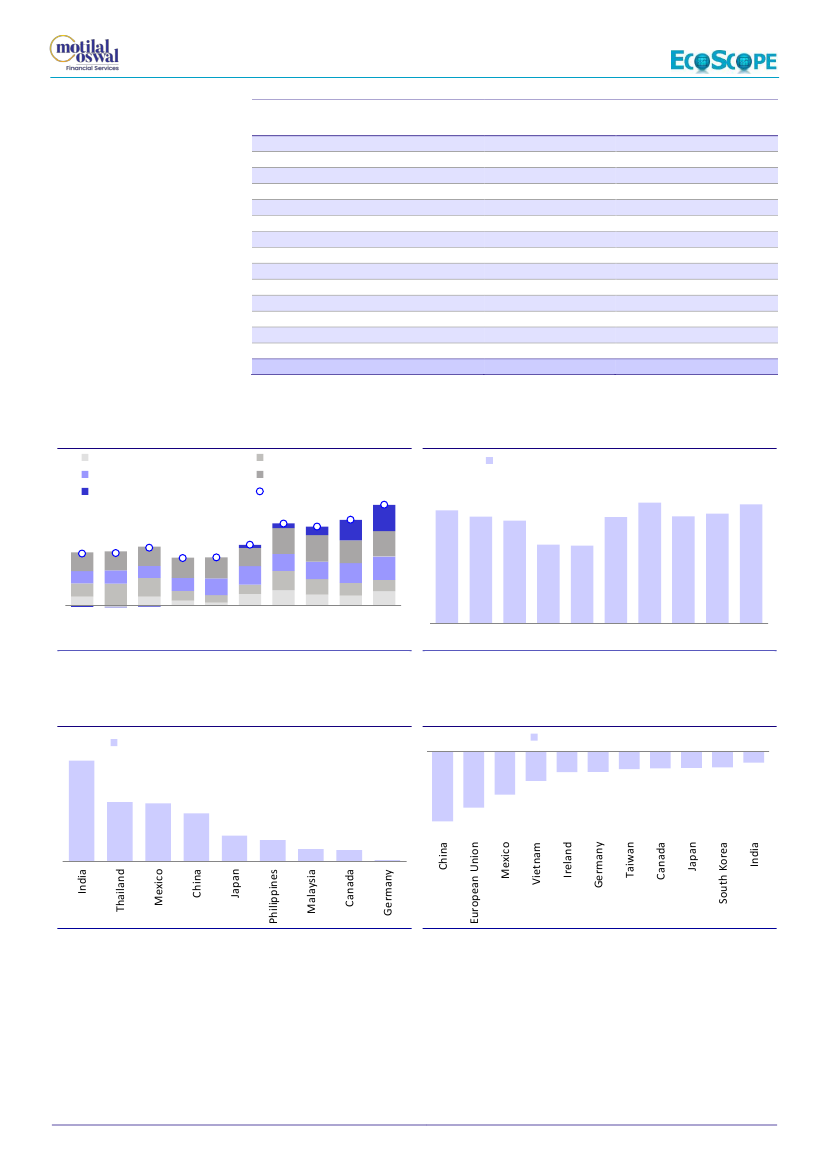 CY06. Notably, India’s imports from the US (as a % of total imports) have remained stable at ~6% in CY24 vs. ~5% in CY14