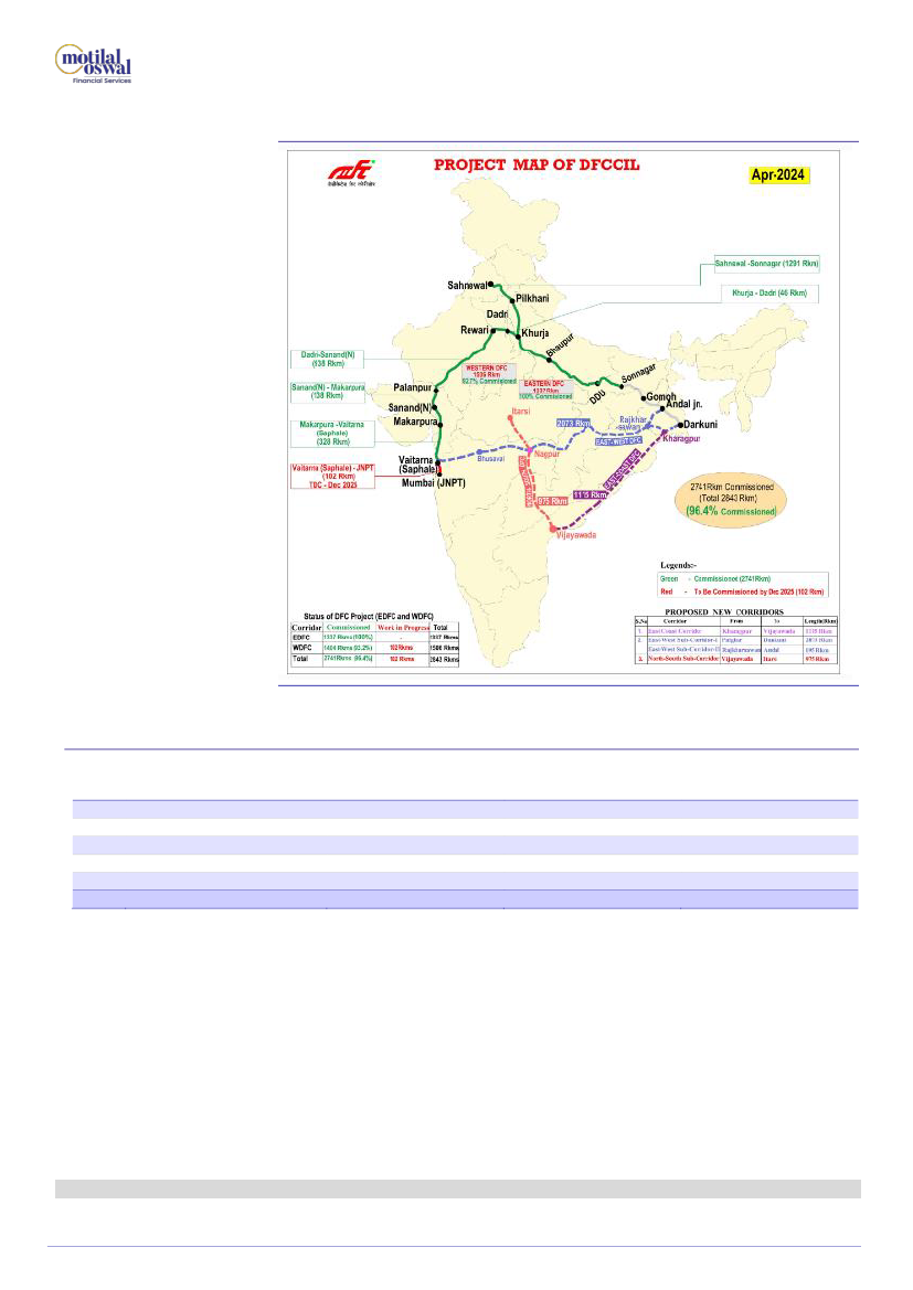 of the planned 2,843km for both the Eastern and Western Dedicated Freight Corridors