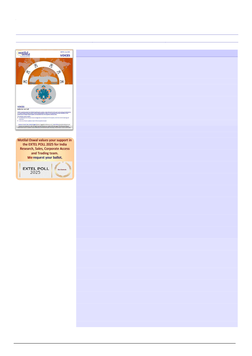 VOICES, a quarterly product from Motilal Oswal Research, provides a ready reference for all the post results earnings calls attended by